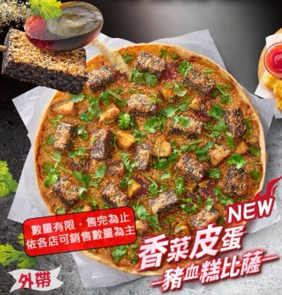 台湾必胜客最新推出的超狂新品香菜皮蛋猪血糕披萨震撼全网!这样的组合简直颠覆了大家对披萨的认知!