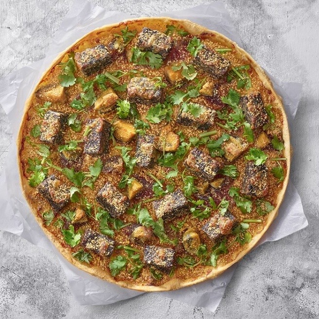 新推出的披萨是特意选用限定的薄脆饼皮搭配香菜,再铺上满满的卤香猪血糕、Q弹皮蛋,最后撒上花生粉中和咸味,想要达到咸甜交错的多层次滋味!自推出市面,这款披萨就掀起了超高的讨论度,更有不少的勇者跃跃欲试,在网上分享起食后感或开箱照!据说,在出售的短短2小时内就卖到食材短缺了!