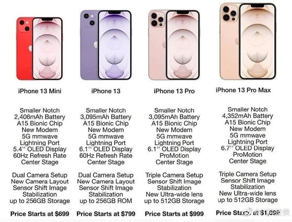 与此同时,该系列手机还会升级为新一代自研A15仿生芯片,虽然依然采用5nm工艺打造,但是在散热和功耗方面会更加出色!iPhone13 Pro和iPhone13 Pro Max也加入了120Hz刷新率,同时电池容量也有了明显的提升!
