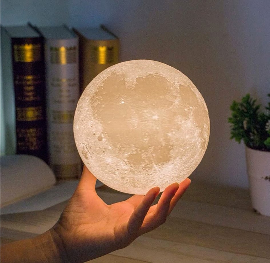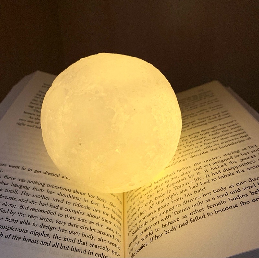 绝美氛围感月球小夜灯超级好看,灯体的设计跟月球很相似!晚上开灯浪漫又唯美,而且付有底座可以放在桌面上当个摆件或装饰,超好看!不刺眼睛,夜里使用刚好,也很烘托气氛,大小非常合适,放在房间刚刚好!