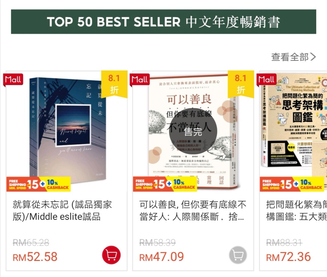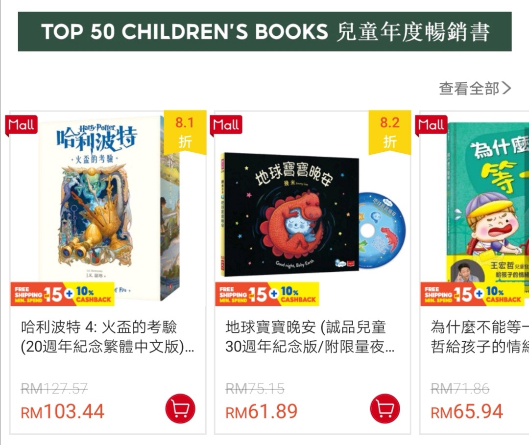 宅在家那么多天,是不是很无聊了呢?那就前往诚品书店在 Shopee 开设的官方网站购买书籍回家阅读啦!配合开幕,诚品书店特别推出限时促销!除了半价优惠,消费满RM45还可获得15%的折扣!