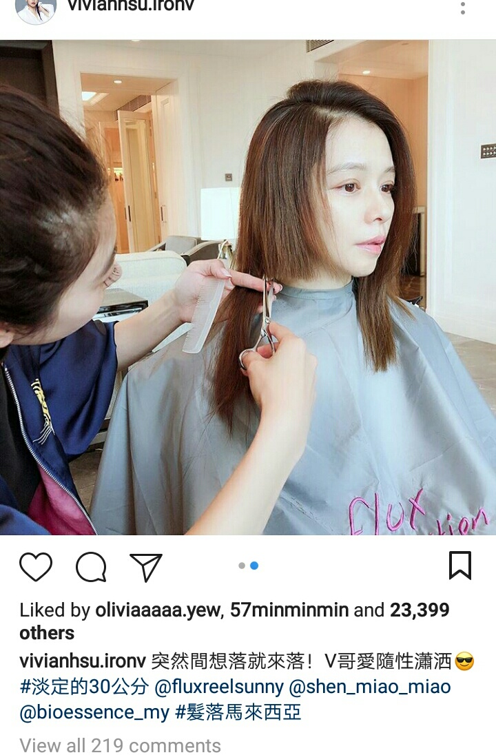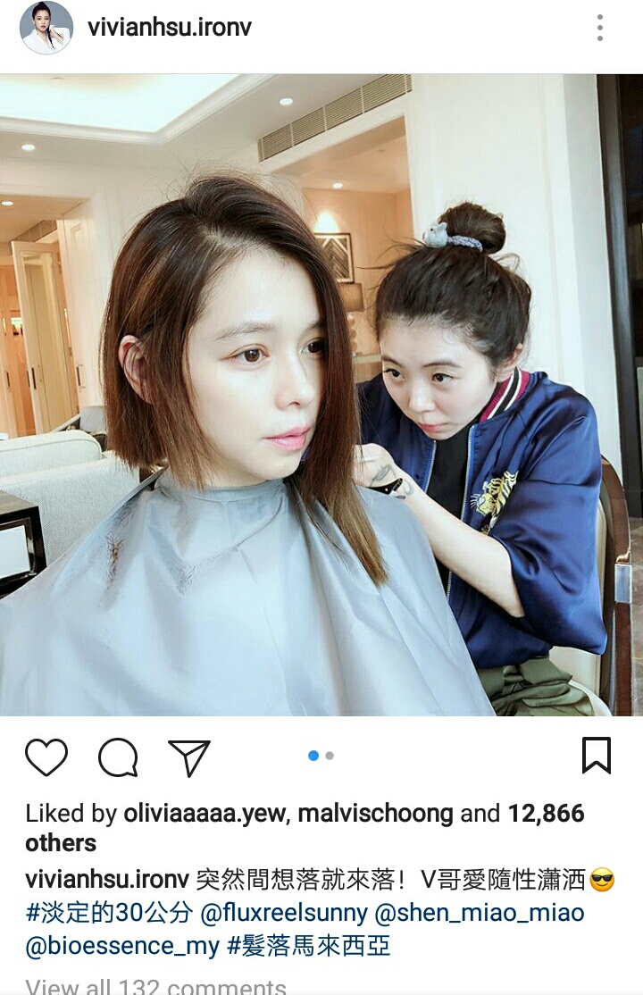 Vivian今午(周六)来马出席代言10年之久的护肤产品新产品推介礼,她一入场就自爆吃了两碗道地美食肉骨茶,搞得裙子有点紧。在活动开场的两个小时前,她在社交网站上传了自己剪短发的照片,并配文写:“突然间想落就来落!V哥爱随性潇洒 #淡定的30公分 #发落马来西亚”
