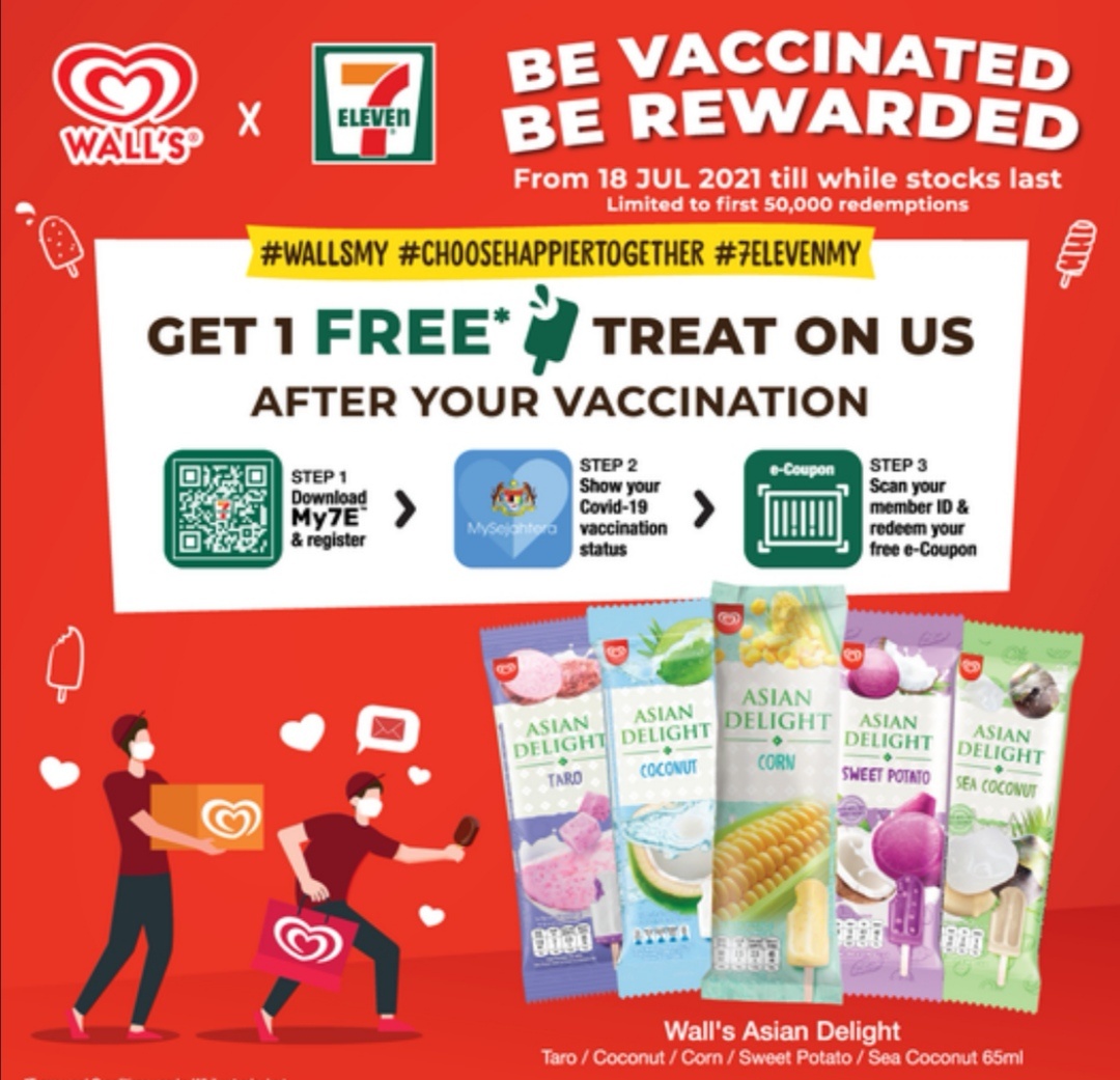 已接种疫苗的朋友注意咯!大马7-Eleven 要免费请你吃 Wall’s Asian Delight 冰淇淋!