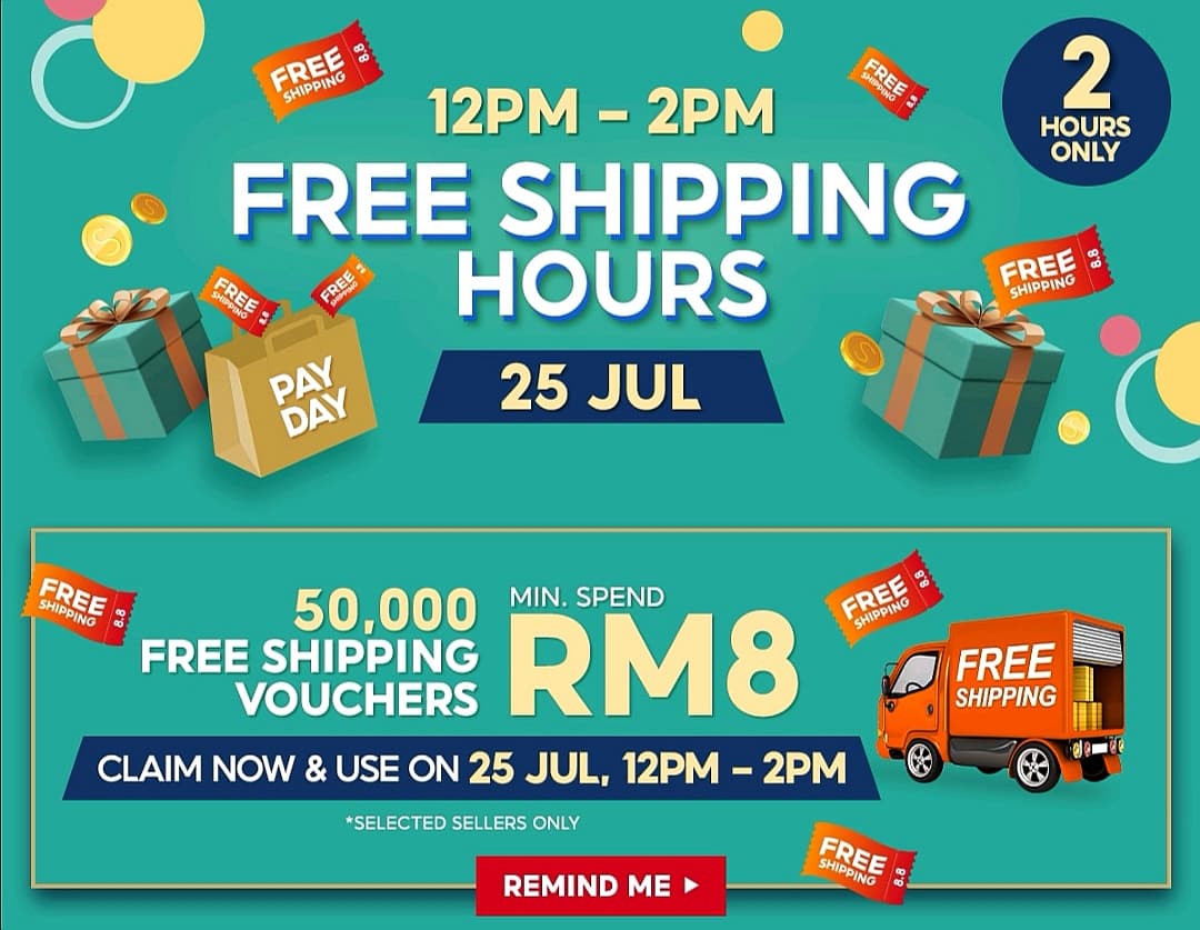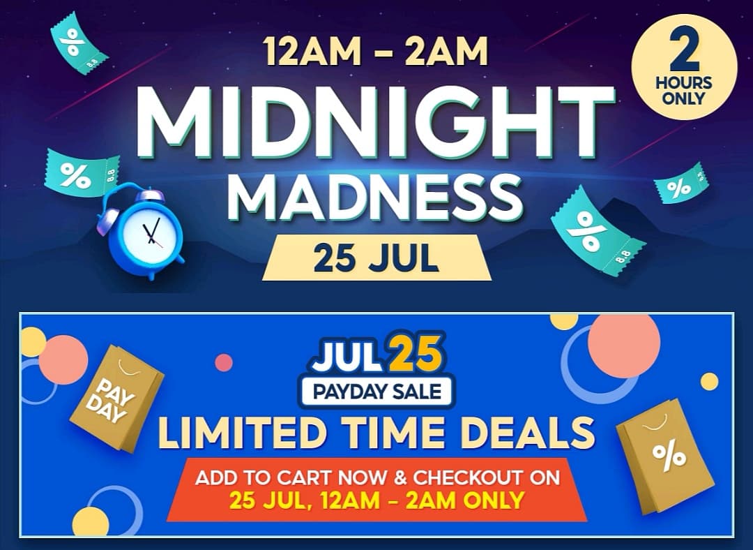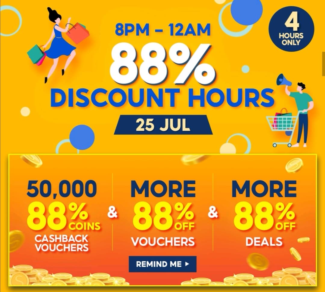 Shopee 七月再推出全新的PayDay Sale促销活动!用户只要在指定时间购买商品,将可获得高达88%现金回扣、最低RM8 免邮券以及 RM0.88 特价商品!