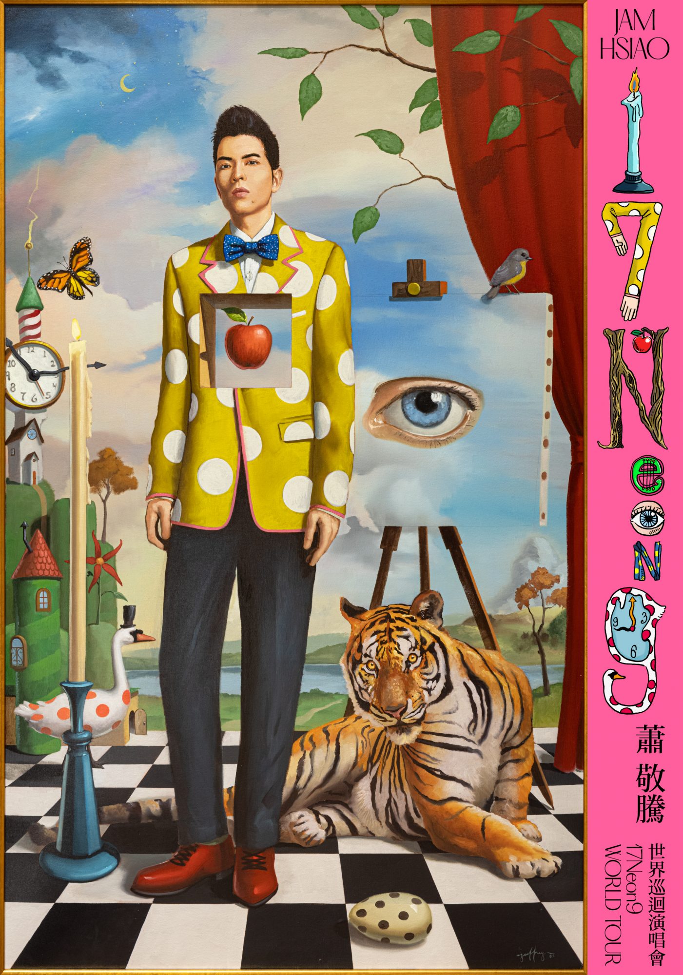 这次的演唱会视觉,更别出心裁地由来自美国超现实主义画家Geoffrey Gersten(杰夫 葛斯坦)绘制专属于老萧的《Neon》画作,将老萧神韵绘制的惟妙惟肖,画中元素也各自有着专属且独特意义,令人一眼难忘,尤其当中的“苹果”,更象征着老萧灵感与创作的起源与所在。除了带来巡演好消息,闲不下来且持续不断创作的老萧,也透露将在演唱会前即将推出全新专辑,敬请歌迷期待!首场《萧敬腾17Neon9世界巡回演唱会》则将于明年2022年的3月26日在上海正式登场。