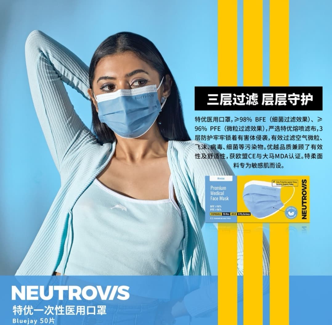 特优医用口罩Neutrovis 具有三层防护,精选熔喷滤布,细菌过滤效果超过98%!Neutrovis能有效过滤空气微粒、飞沫、病毒、细菌等污染物,同时特柔的面料专为敏感肌而设!