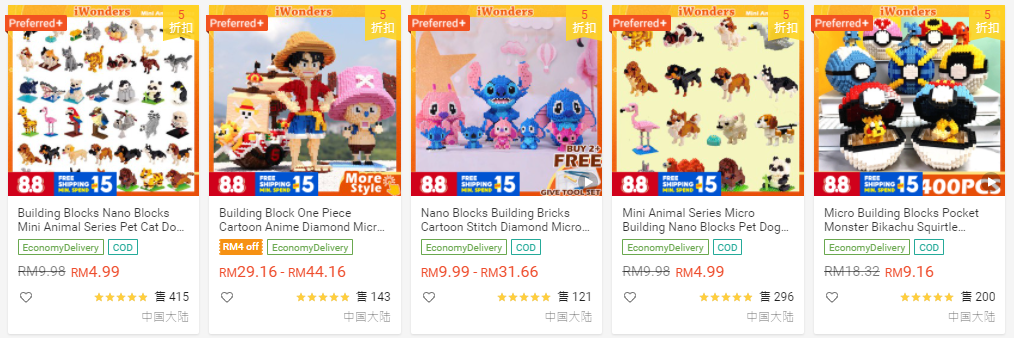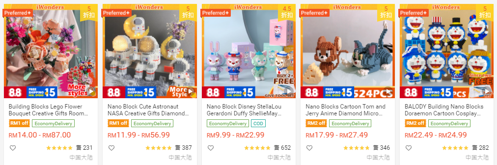 现在,你可以在Shopee找到许多特别的迷你积木,不管是经典卡通,像是蜡笔小新、米奇、汤姆和杰瑞、龙猫、玛丽欧还是海贼王,全部都有!其他的像是太空人、猫咪、独角兽还是招财猫,也能购买得到!