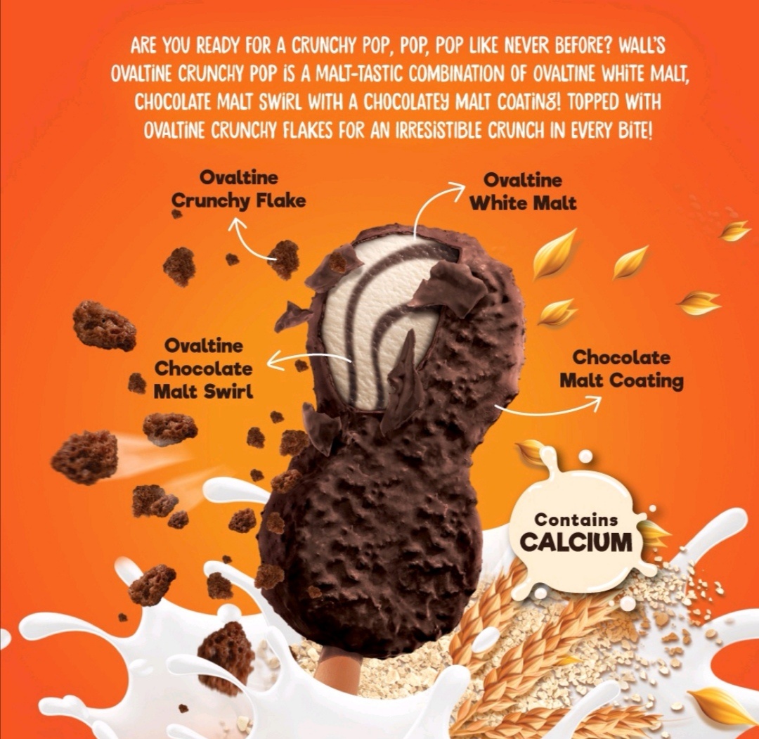 Wall’s和Ovaltine合作联手推出全新口味的 Crunchy Pop冰淇淋!浓郁顺滑的Ovaltine白麦芽和巧克力麦芽冰淇淋,配上巧克力外层吃起来超过瘾!