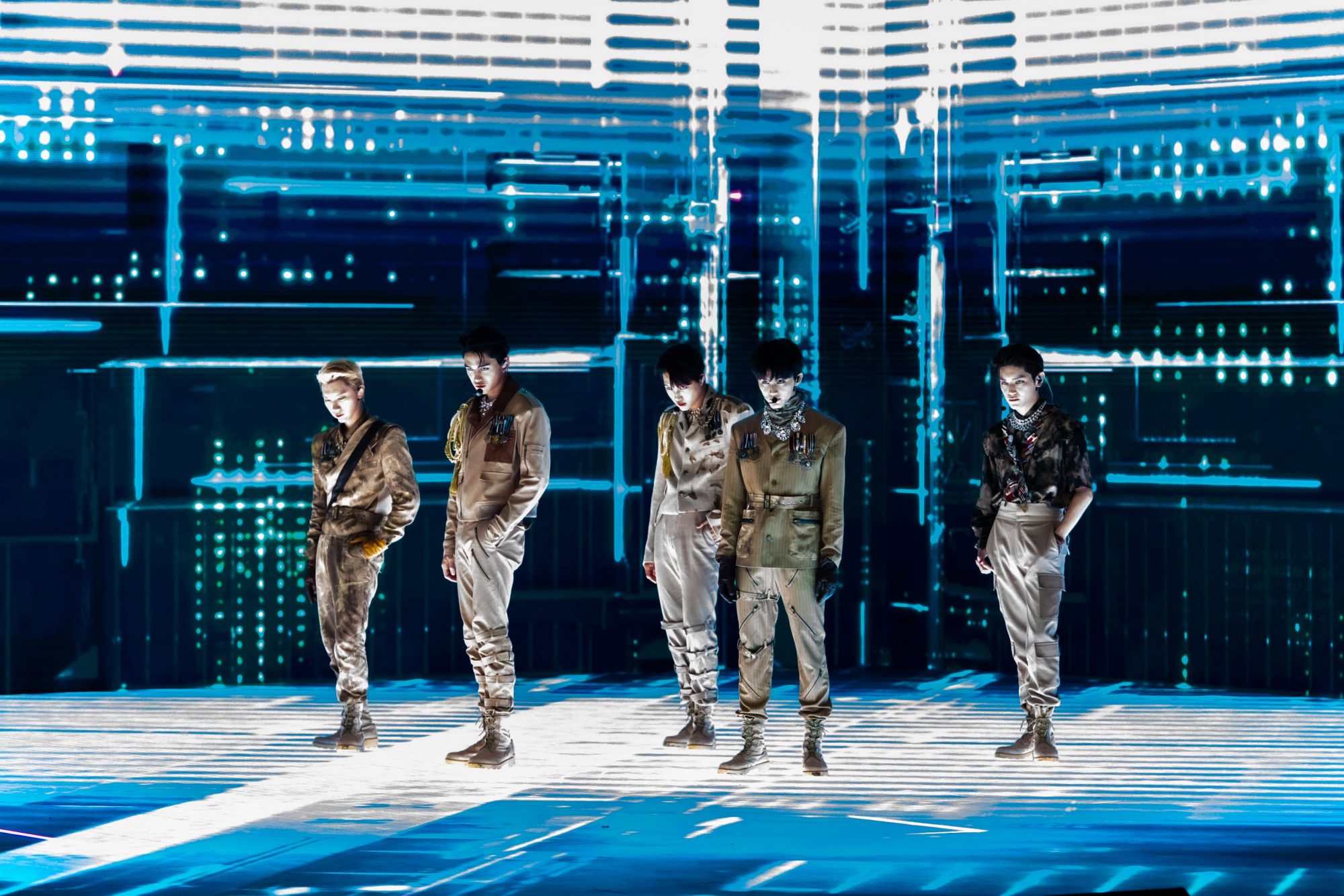 为了不让粉丝失望,泰民和伯贤特别在入伍前已经事先录好5首歌曲的画面,以另类的方式合体出现在大屏幕上,此外,两人还特别录了惊喜影片,让粉丝感动表示“原来他们在入伍前默默做了那么多”,而TEN也透露有部分的歌曲是预录好,所以能看到隔离中的KAI也同时出现在舞台中,7人巧妙的合体,弥补了舞台空缺的遗憾。
