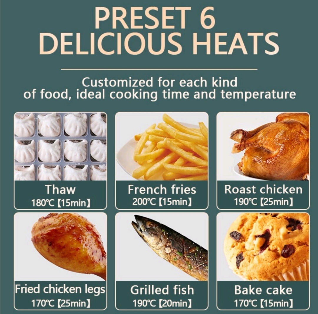 这样的烹饪方式,似乎比传统的油炸更加健康,怎么吃都没有负担,减肥党也可以大口吃炸物啦!不管是烤火鸡、炸饺子、炸带鱼、鸡翅、土豆、披萨还是芝士土司等,全部都可以使用空气炸锅完成,省时省力!按了开关之后等着吃美食就好了!