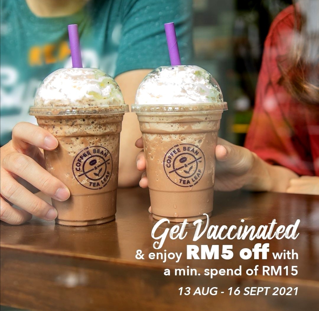 已接种疫苗者购买Coffee Bean 饮料可获得折扣 12 Aug , 2021 | 吃喝玩乐 Coffee Bean 饮料推出超值促销,已接种疫苗者可获得RM5折扣! 你接种疫苗了吗?那就不要错过Coffee Bean最新推出的饮料促销了!你只要前往临近的分店,消费满RM15,并向员工出示 MySejahtera证明已接种疫苗,即可享有折扣!无论是1剂还是完成2剂接种疫苗,皆可获得RM5折扣! 每位顾客只限兑换1次!这项促销从8月13日开始,直至9月16日!喜欢喝Coffee Bean饮料的朋友,记得不要错过了!温馨提醒,大家记得保持社交距离、勤洗手、戴口罩! 分享