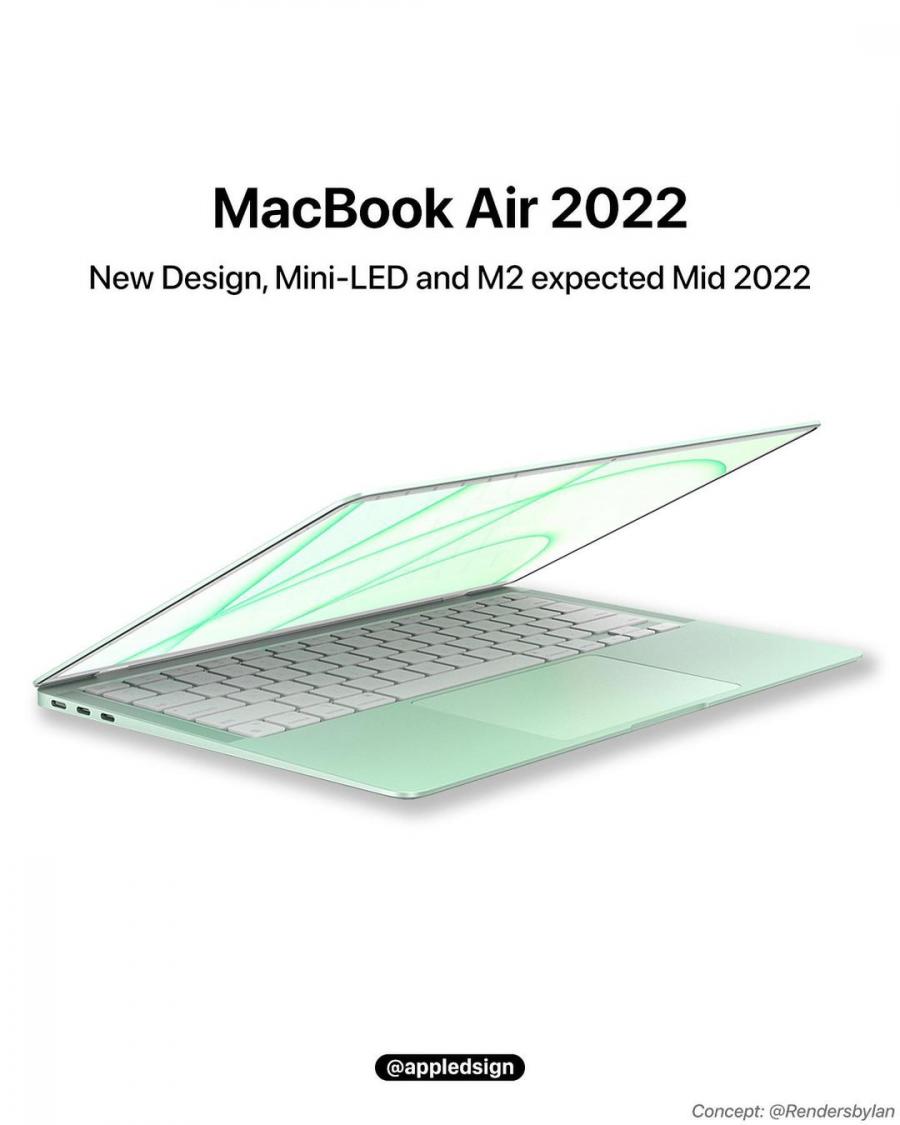 MacBook Air渲染图曝光,苹果2022年或推出梦幻糖果色选项!