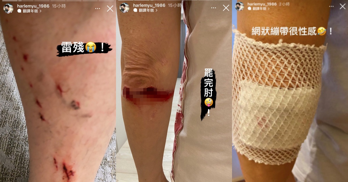 庾澄庆骑脚踏车受伤,在IG晒出一连串的治疗照片,自嘲“雷残”、“罢玩肘”、“网状绷带很性感”,还打趣称受伤的伤口形象很像齿轮,最后不忘分享自己包扎后的模样笑说:“包装完成。”