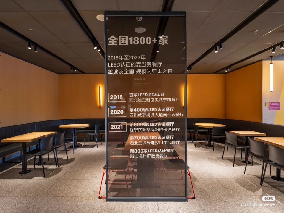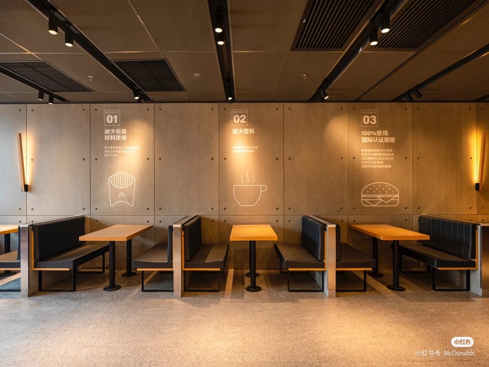 值得一提的是,餐厅内的座椅也是用100%海洋塑料回收制成的,还有一面由回收塑料瓶制成的rPETG环保宣传板,向顾客宣传倡导环保的同时,也让大家能了解与亲身体验绿色低碳生活所带来的好处!