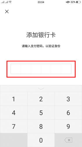 步骤5:添加银行卡,并输入支付密码(如以前设置过)