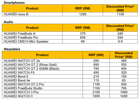 这项促销只限10月10日,各种电子商品像是:手表系列、MatePad、MateBook以及智能手机均有提供减价!打算入手的朋友,可以趁着10月10日到Lazada或Shopee Huawei旗舰店抢购!