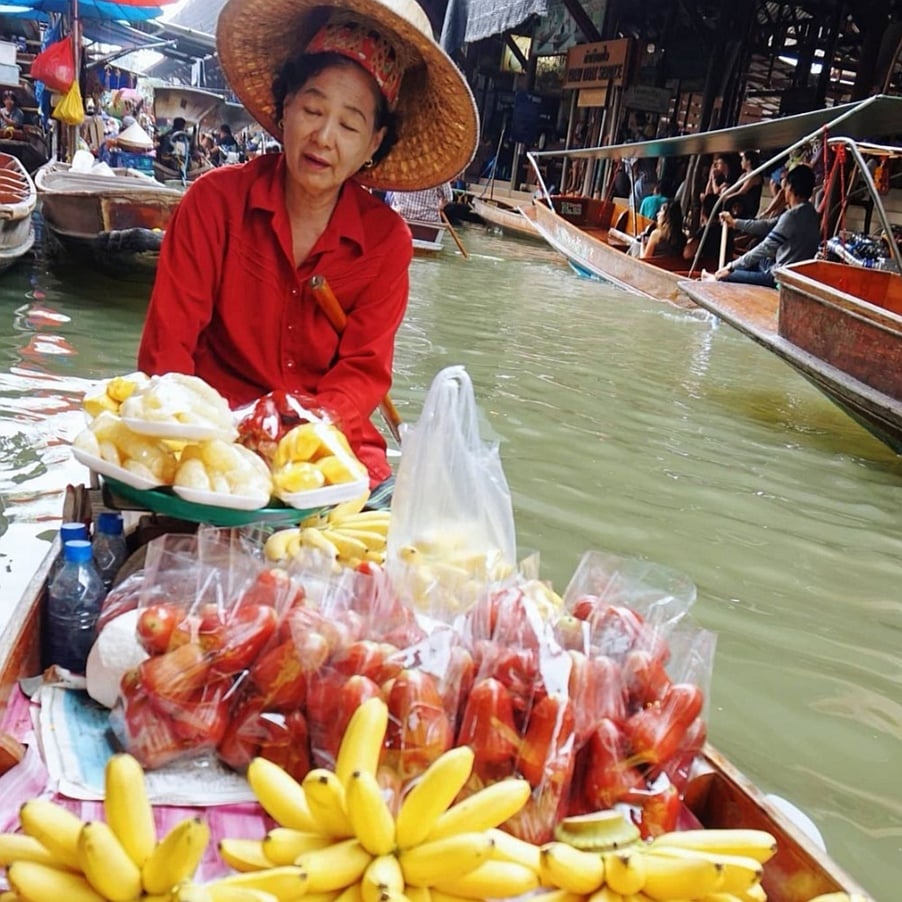 水上市集也是泰国最具有特色的景点,泰国人会把售卖的食物或物品放置在穿上进行兜售!在顾客想要买的时候,划船去到顾客身边,是个特别的体验!