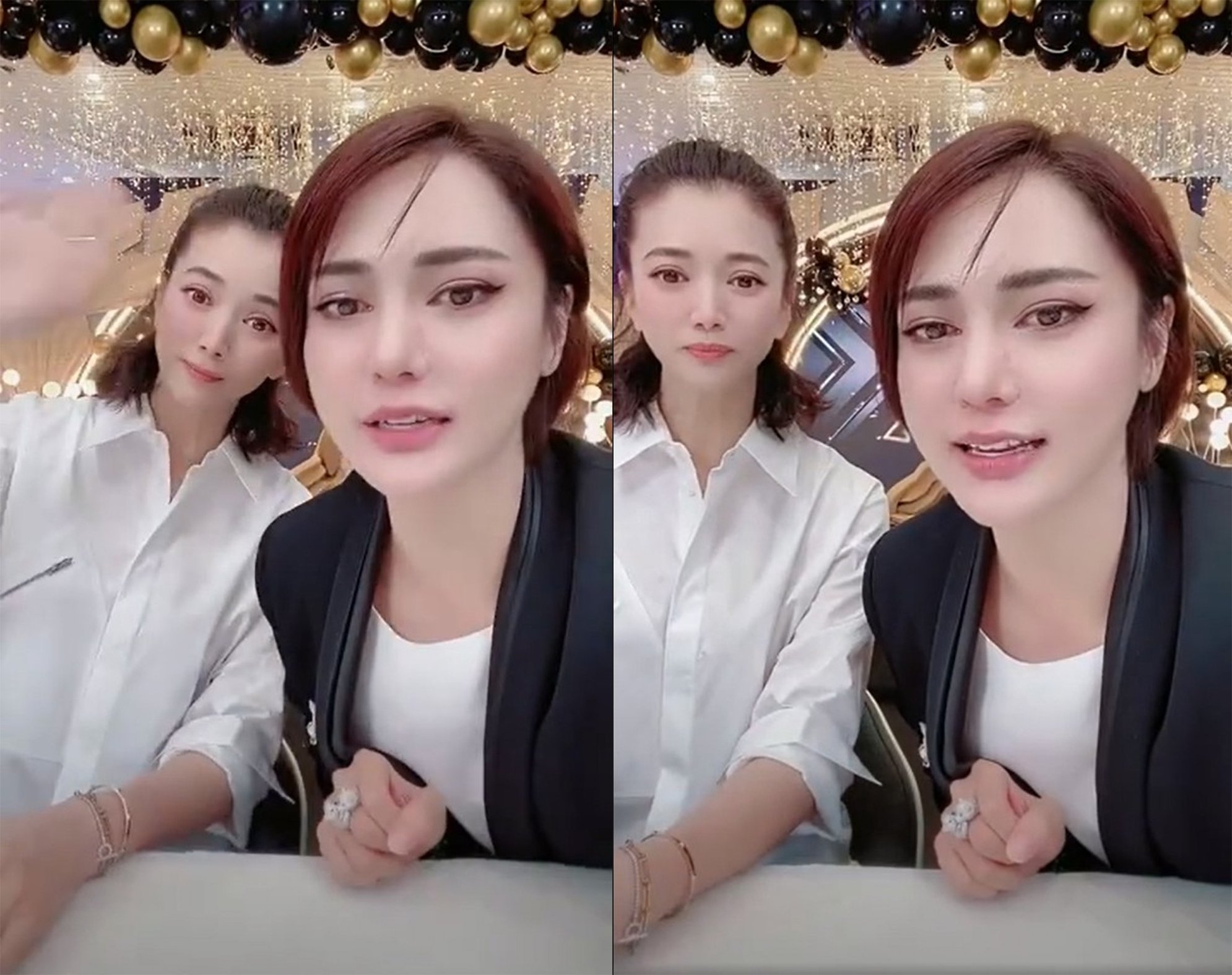 袁咏仪和网红主播齐做直播,身穿白色衬衫的她简单利落,可是她一出现在镜头前,立马吓坏大家,因为在滤镜之下,袁咏仪的五官比例严重失调,脸小得离谱、整个人变形,完全认不出是她本尊!此时主播特发现太夸张,立马关掉了部分滤镜功能,虽然看上去自然了一些,但和袁咏仪本人还是相距甚远。