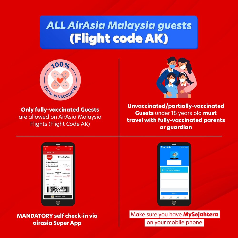 亚航指出,除了完成新冠肺炎疫苗接种,所有入境旅客,包括砂拉越公民,都必须填写电子健康申报表,由于此表格只在抵达砂拉越前12小时内有效,客人受促在出发前在机场填妥表格。在进一步放宽前往沙巴和砂劳越州的旅行要求后,亚航开始恢复前往沙巴和砂劳越州的国内航班,航空公司希望提醒旅客以下的限制和要求仍然存在: