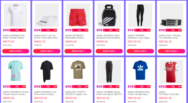 除此之外,Adidas在Lazada开设的官方网店也同样有提供高达55%的折扣,不过优惠只限11月11日(12am至2am)!付款之前,你可以先以RM0.01的价格购买优惠劵,享有额外12%的折扣!点击链接:https://invol.co/cl78z44