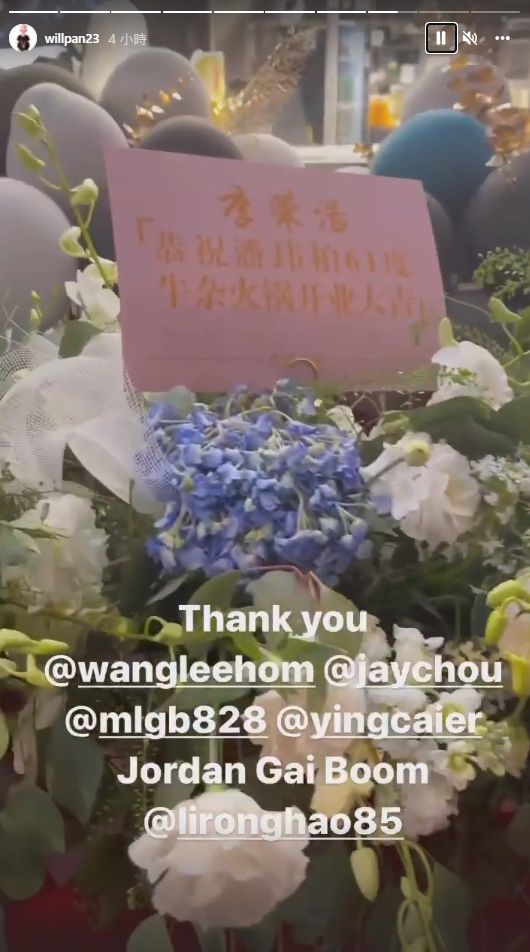 不仅如此,潘玮柏也开心地在IG晒出一系列艺人好友送到现场的花篮,包含邓紫棋、杨丞琳、王心凌、陈妍希、欧阳娜娜、王力宏、周杰伦、李荣浩、李晨、Gai周延、黄旭等人,全都祝福他开业大吉,好友周杰伦则用口头禅“啊唷,不错喔”祝贺。