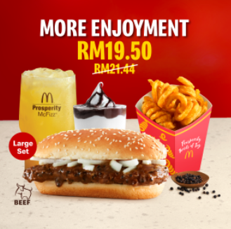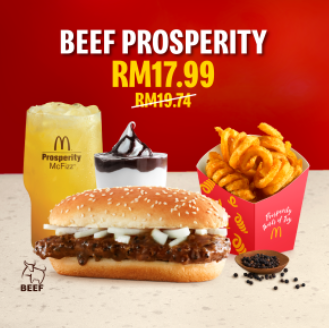 麦当劳最新推出的发财汉堡包,吃过了吗?新年必出的经典美食,超大份的肉饼淋上香浓的酱汁,每口都是满满的幸福感!现在,你只要通过麦当劳应用程序(App)来购买,即可以特价购得各种套餐!