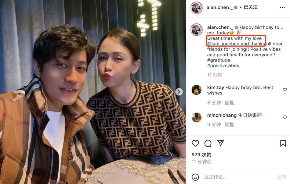 二人世界!陈乔恩与大马男友庆生甜蜜晒合照 8 Dec , 2021 | 娱乐前线 陈乔恩和大马男友庆祝生日,随后男友晒出两人甜蜜合照,并甜称陈乔恩为“my love”,两人感情依旧稳定甜蜜。 艾伦在社交平台上分享了两人合影,祝福自己生日快乐,感慨和陈乔恩在一起时光美好,并称对方为“my love”,两人于2019年参与恋爱综艺节目《女儿们的恋爱》并在现实中交往成为恋人。 分享