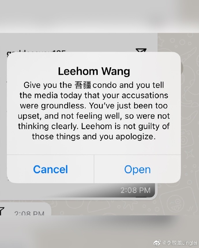 王力宏非但没有透露出半点悔过之心,甚至还以目前她跟小孩的居所做为要胁,”以命令的口吻”要她”发声明道歉说你昨天其实是神智不清发的文”,说如果照做的话”跟孩子住的房子就给你”,李靓蕾怒批”为了跟孩子有地方住,条件是需要发文骗大众我神智不清?这太不可思议了,也超越了道德的底线。”