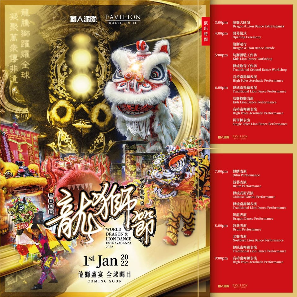 吉隆坡新开的Pavilion Bukit Jalil 在1月1日当天,就为大家准备了许多精彩的活动及表演,其中最不能错过的肯定是世界龙狮节以及全马最盛大的IFood Expo美食展了!