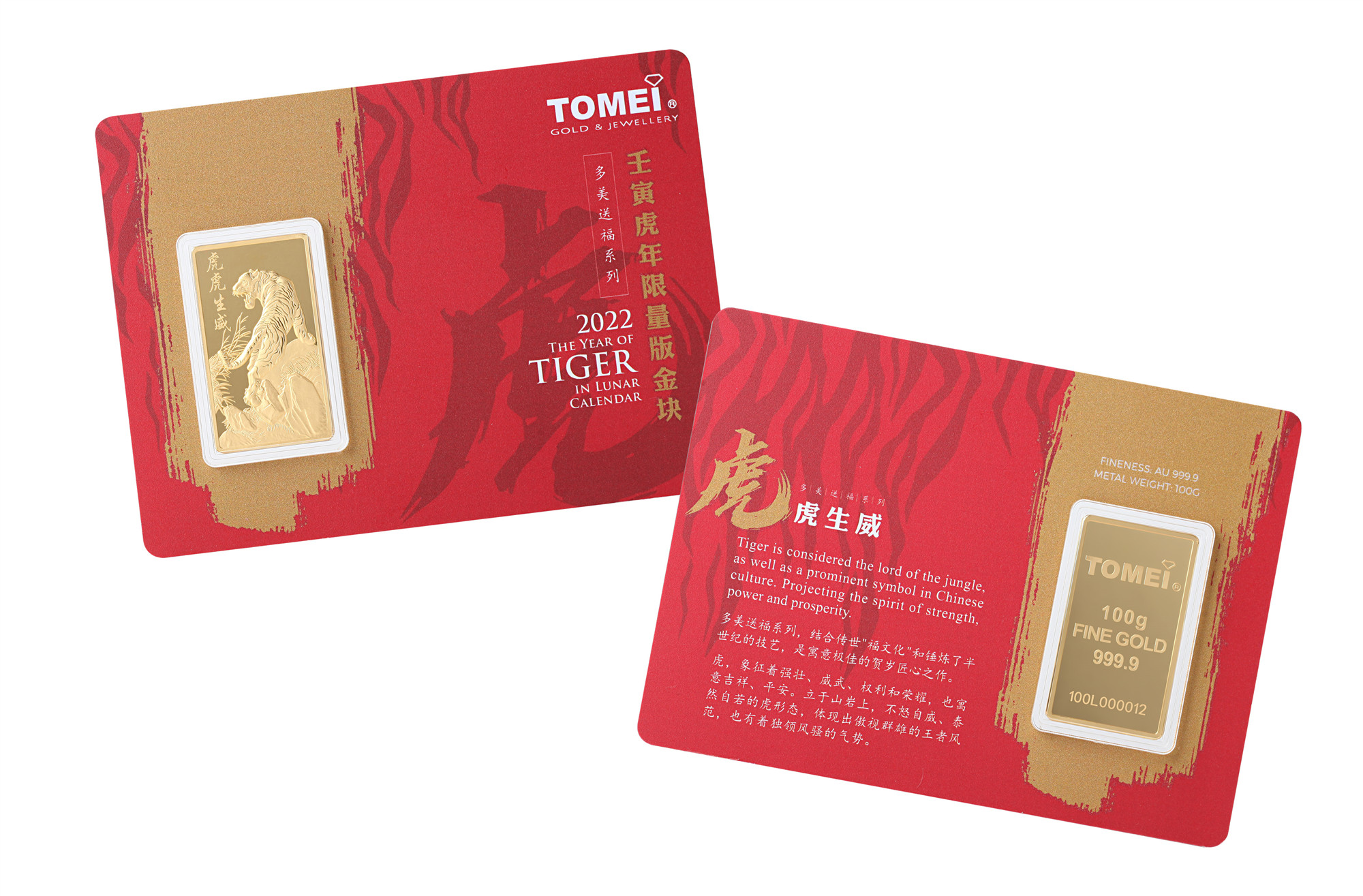 配合壬寅金虎年,多美特别推出了“金虎贺岁系列”。除了有多美集团一贯独家打造的“压岁金”1克和10克999金币,更首度推出100克虎年限量版生肖金块,加上0.5克和1克的“百福金钞”,以及用金箔打造的“金利是”,成为首家完整推出含金币、金块、金片和金箔的生肖相关产品的本地金钻行。