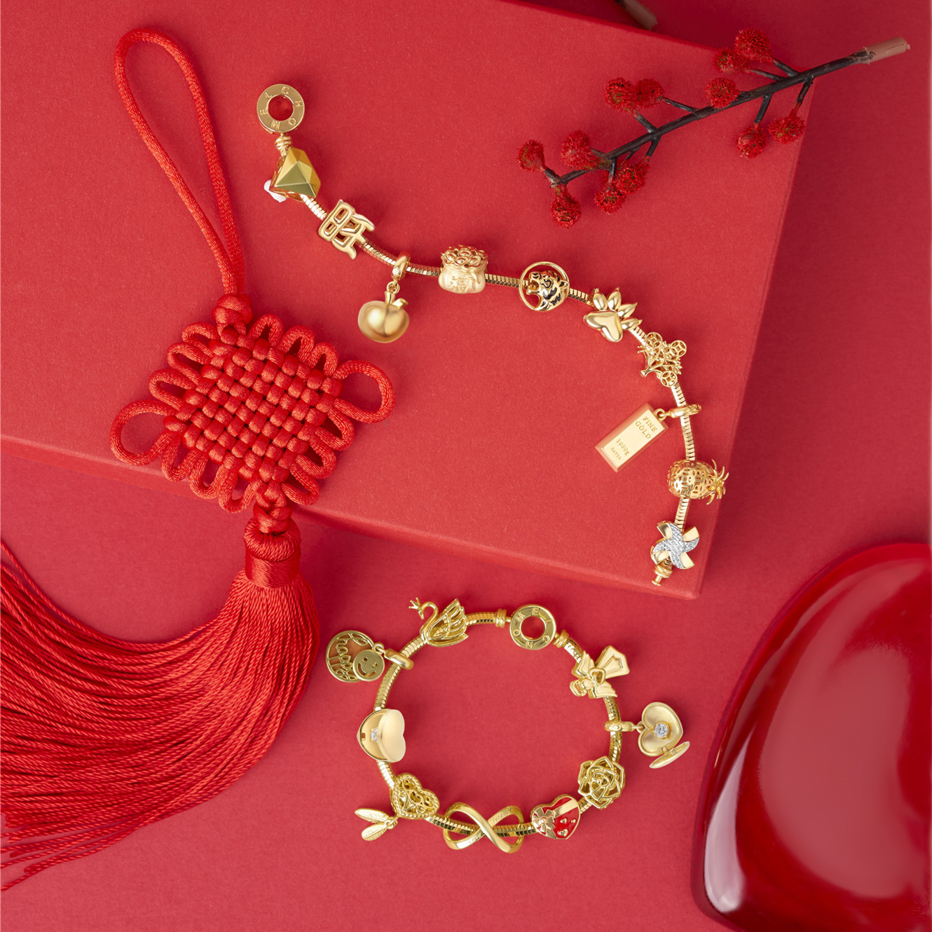 值得一提的是,多美集团旗下品牌Chomel也推出了造型可爱的串饰,顾客可以发挥各自创意,任意搭配成极富好兆头的组合,像是钻石、金砖、金钱树、福袋和虎爪,寓意“天下财富一把抓”等。